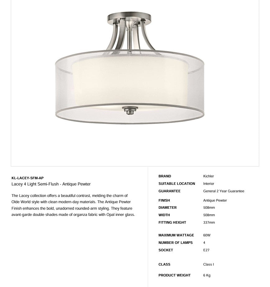 Lacey 4 Light Semi-Flush Mount - Antique Pewter - Clicklights Shop