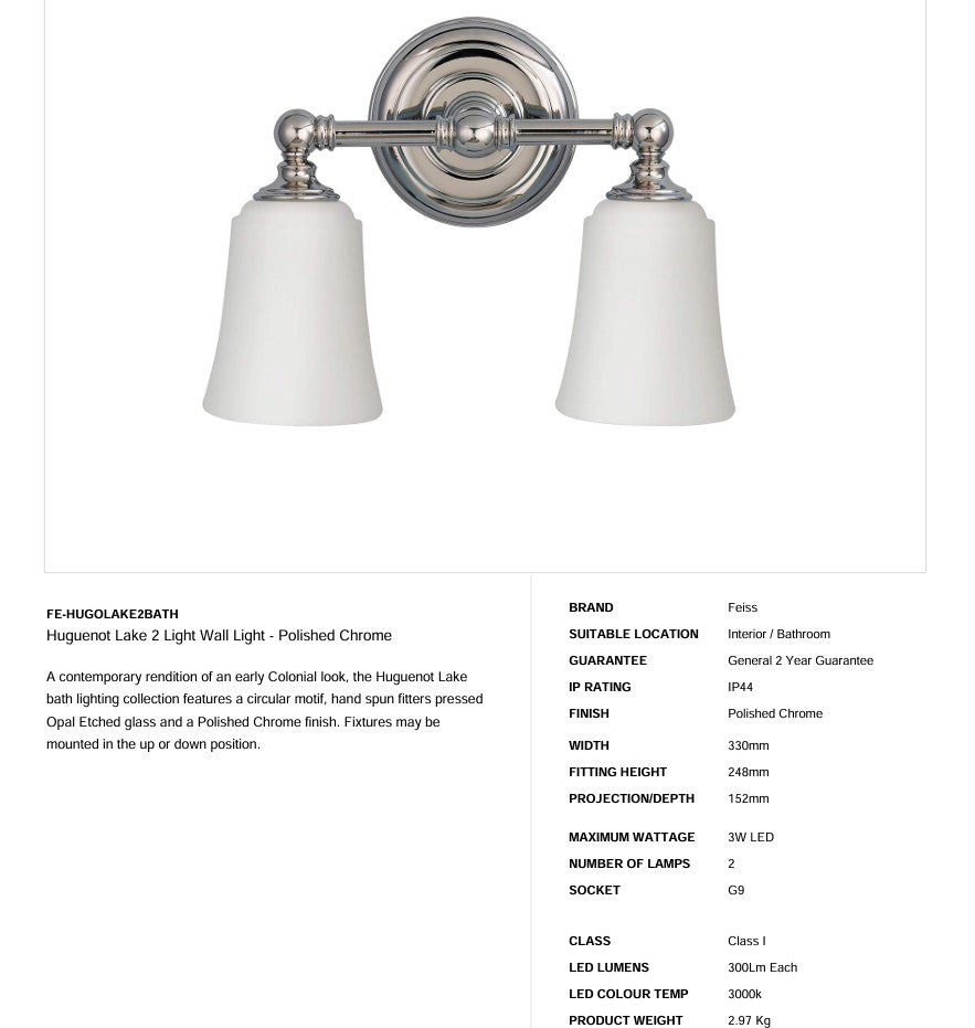 Huguenot Lake 2 Light Wandleuchte - Chrom poliert - Clicklights Shop