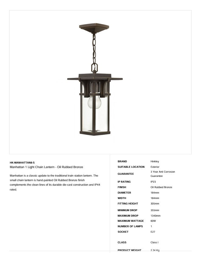 Manhattan ist eine klassische Neuauflage der traditionellen Bahnhofslaterne. Die mittelgroße Sockellaterne ist handbemalt, in ölgeriebener Bronze lackiert und ergänzt die klaren Linien ihrer langlebigen Druckgusskonstruktion und ist IP44-zertifiziert.