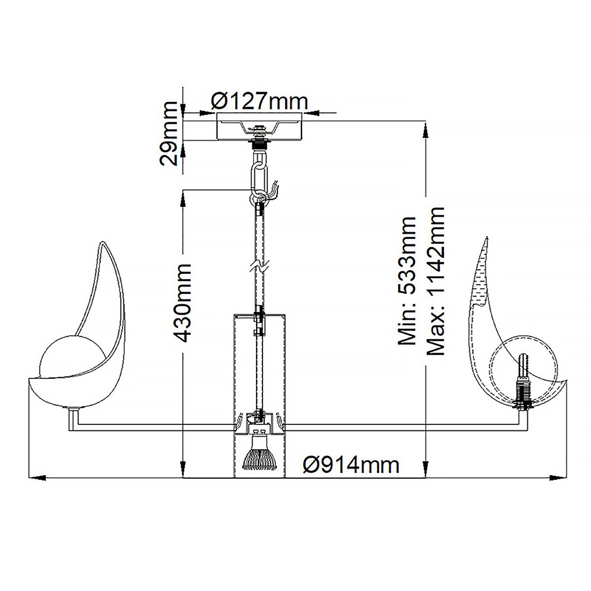 Abmessungen: H: 430 mm T: 914 mm Min/Max Tropfen: 533 mm - 1142 mm